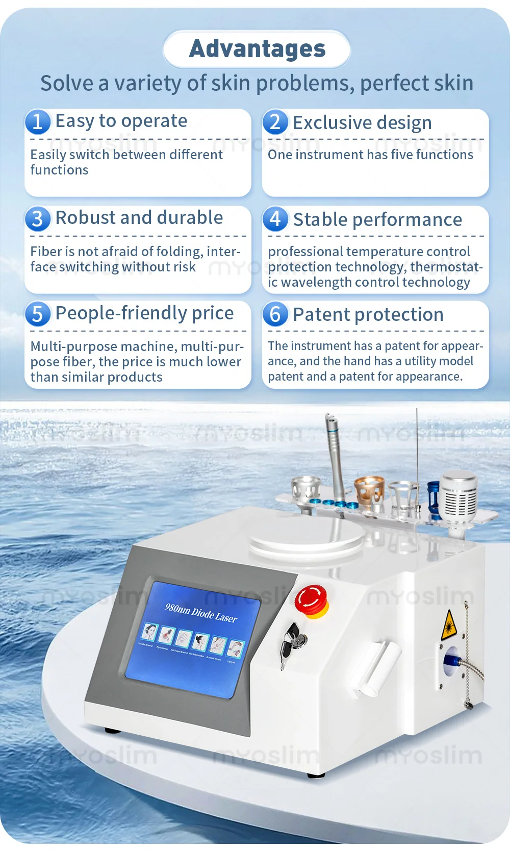Best 30W 6 in 1 980nm Diode Laser Blood Vessels Removal Nail Fungus 980 Diode Laser Vascular